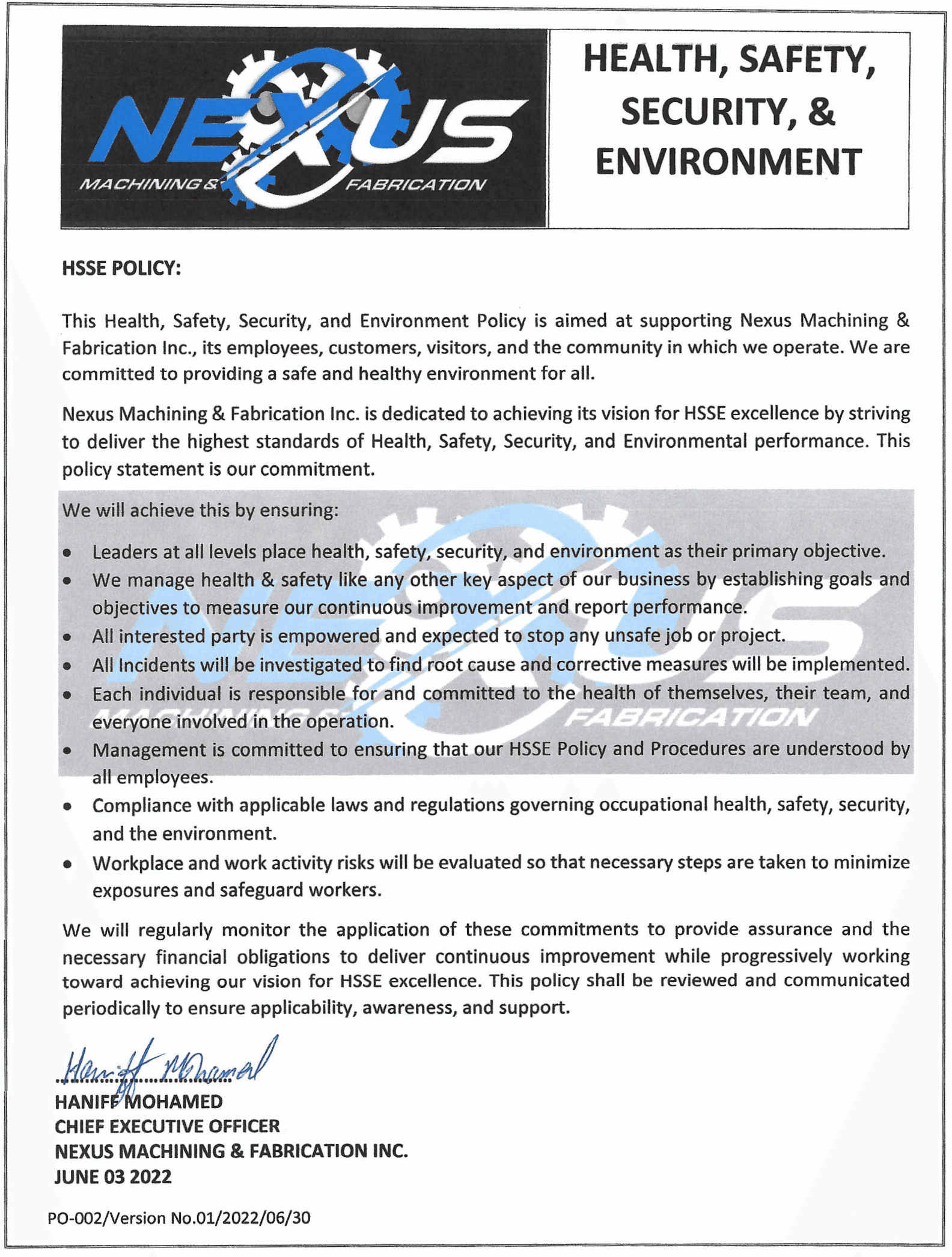 We are committed to protecting the health and safety of everybody who plays a part in our operations, lives in the communities in which we operate or uses our products. Wherever we operate, we will conduct our business with respect and care for both the local and global environment and systematically manage risks to drive sustainable business growth. We will not be satisfied until we succeed in eliminating all injuries, occupational illnesses, unsafe practices and incidents of environmental harm from our activities.