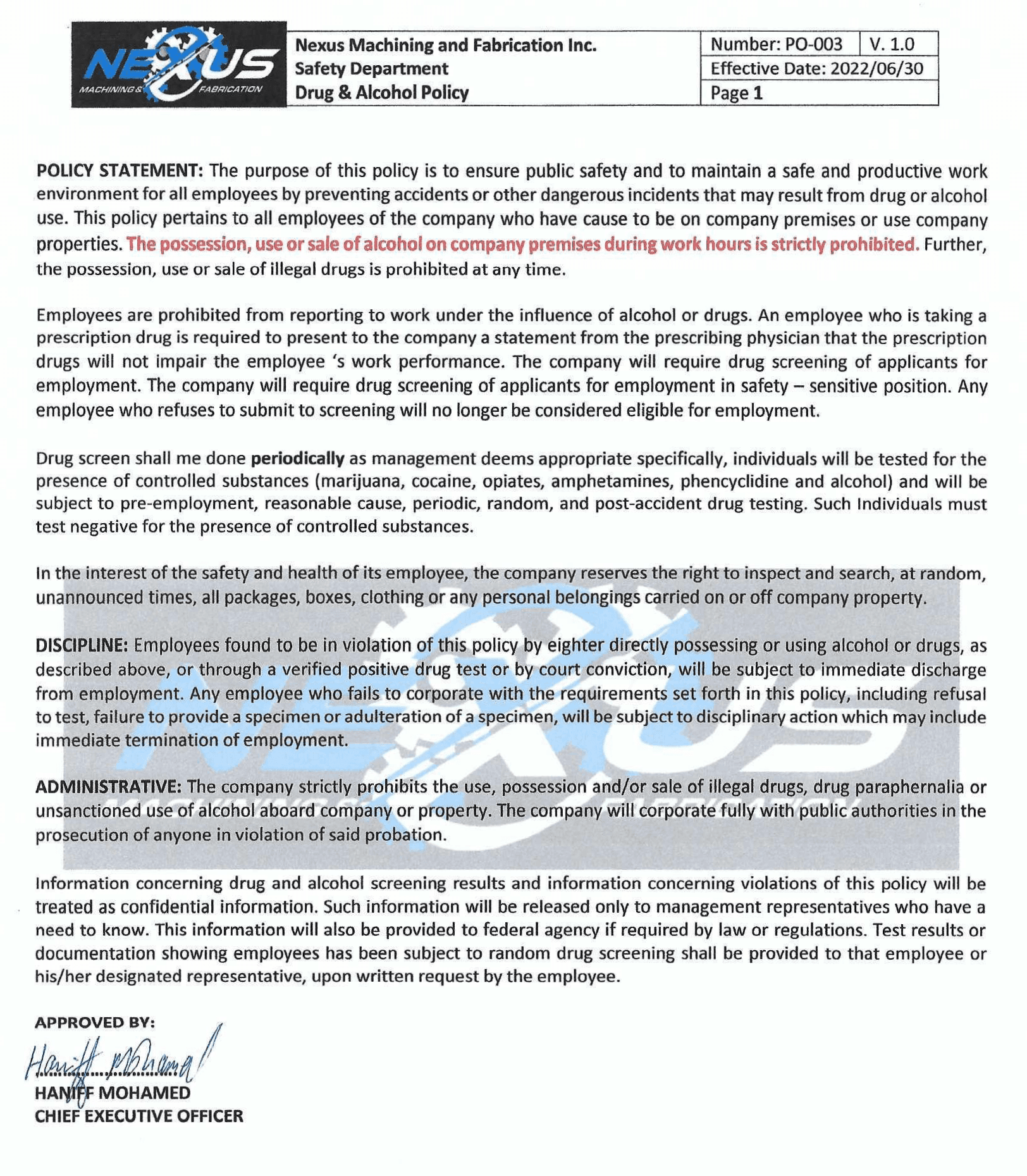 We are dedicated to maintaining a drug-free workplace. All employees are required to perform their job duties unimpaired by illegal drugs, marijuana, alcohol, or the improper use of legal substances. Employees are prohibited from working or reporting to work when impaired by alcohol or drugs.